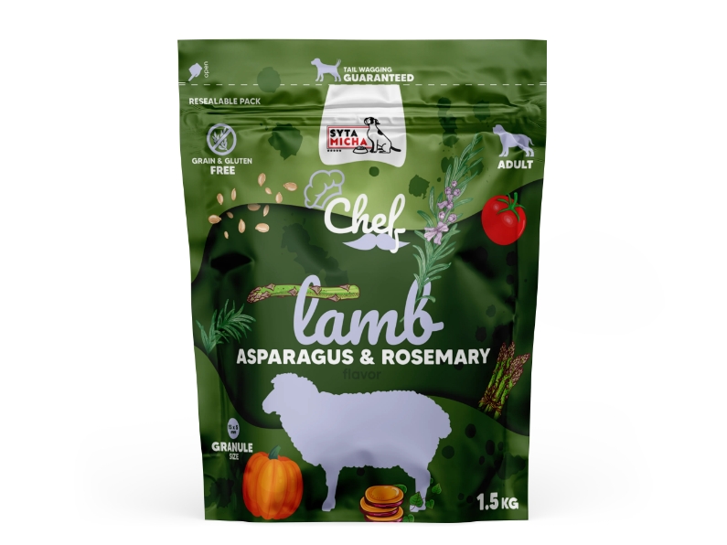 A SYTA MICHA egy magas hústartalmú, gabona- és csirkementes száraztáp felnőtt kutyák számára. A bárányhús alacsony allergiakockázatú! Könnyen emészthető húsfajta. A hozzáadott Enterococcus faecium törzs egy probiotikum, amely segíti az emésztést és a bélflóra egyensúlyát. A Yucca schidigera kivonat támogatja az emésztést és csökkenti a széklet kellemetlen szagát. A glükozamin és kondroitin támogatja az ízületek és a porcok egészségét.