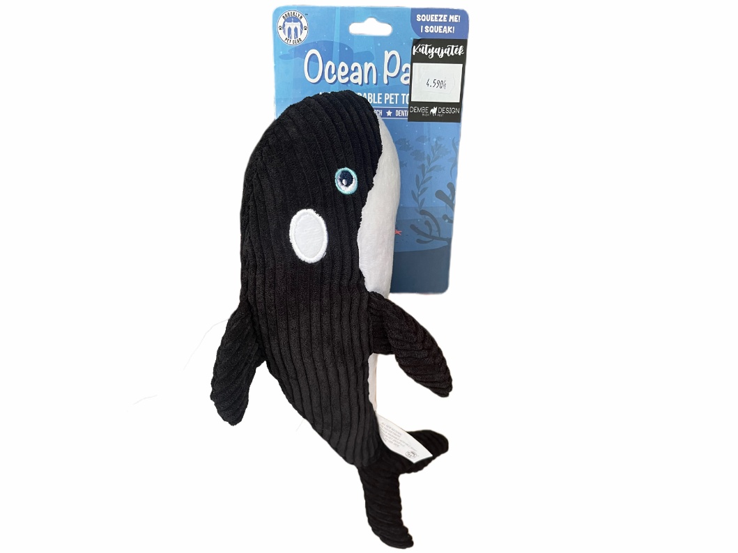Brooklyn Pet Gear sípoló bálna plüss. A tengeri élővilág ihlette figura felszíne bordázott textilborítású, így kellemes érzést nyújt a kutyáknak rágás közben. A bálna belsejében egy sípoló található, amely garantáltan felkelti figyelmét. Ideális közepes és kisebb méretű kutyák számára!