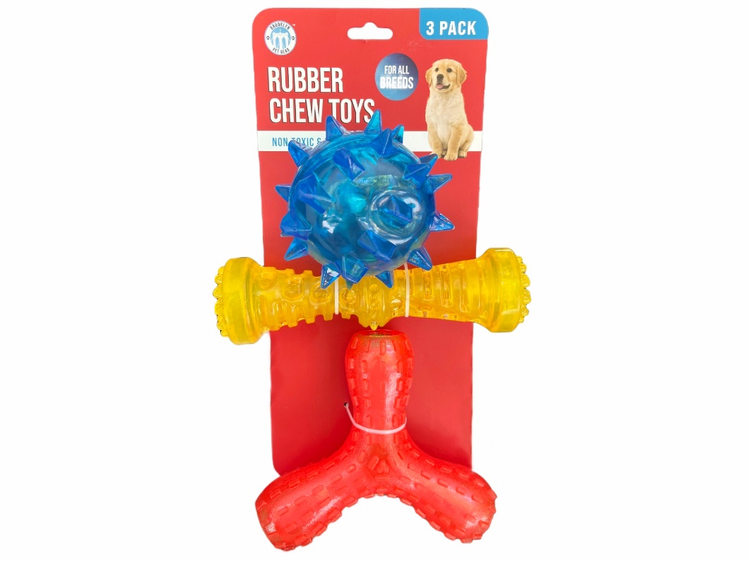 BROOKLYN PET GEAR kuncogó és sípoló kutyajáték szett. Három részből áll egy sípoló labdából, egy sípoló hengerből és egy kuncogó hangot adó háromágú játékból. A mókás hangjukkal nagyon szórakozatóak és sokoldalúan használhatóak. Tartós, strapabíró természetes gumiból készültek.