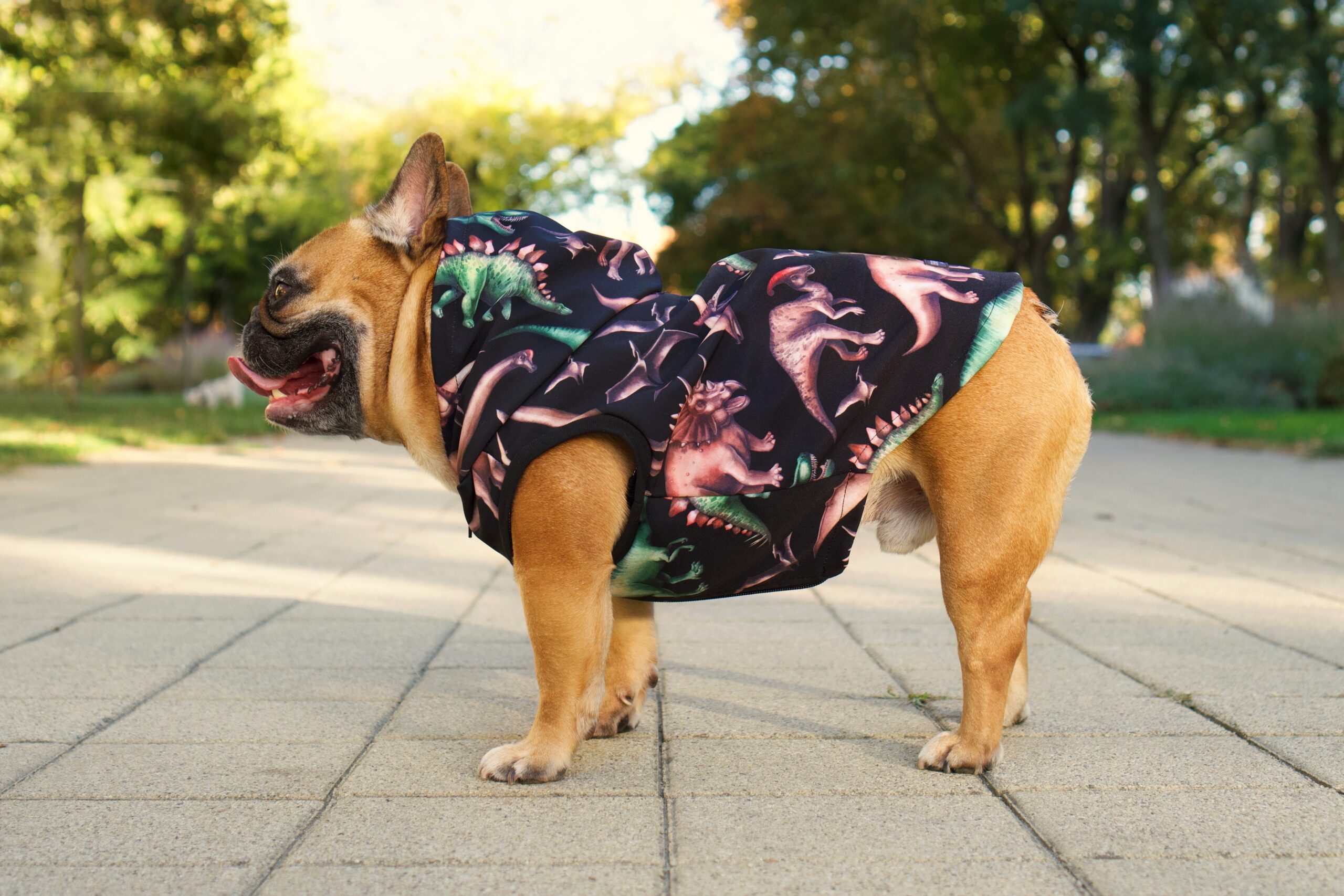 Kényelmes és vízálló francia bulldog esőkabát. Garantáltan ellenáll a szélnek és az esőnek! Magyarországon készült minőségi anyagokból. Három rétegből áll. Egy vízálló rétegből, egy vékony polár rétegből és egy színes selyembélésből. Nem tartalmaz káros vegyszereket, amelyek irritációt okozhatnak. A szabása kimondottan ideális francia bulldogok és mopszok számára! Mosógépben 30 fokon mosható!