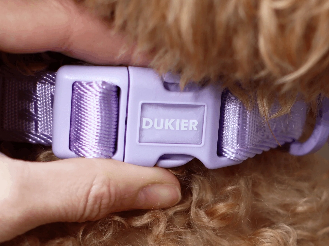 Állítható, kényelmes nyakörv a DUKIER spanyol márkától. Puha neoprén bélésének köszönhetően nem dörzsöli a kutyák nyakát. Széles skálán állítható így tökéletesen illeszkedik. A csattja 4 pontos biztonsági zárrendszerrel van ellátva, így extra védelmet nyújt használat közben. Mosógépben mosható 30 fokon!