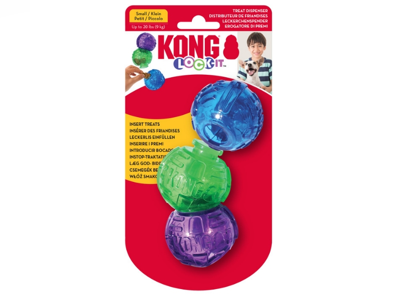 A KONG Lock It egy interaktív jutalomfalattal tölthető labdajáték. Hosszabb ideig leköti a kutyákat figyelmét és ösztönzi az aktív gondolkodást. A belsejébe könnyedén elrejthető a jutalomfalat, száraztáp vagy pástétom. Ideális választás mentális stimulációhoz illetve unalom ellen!
