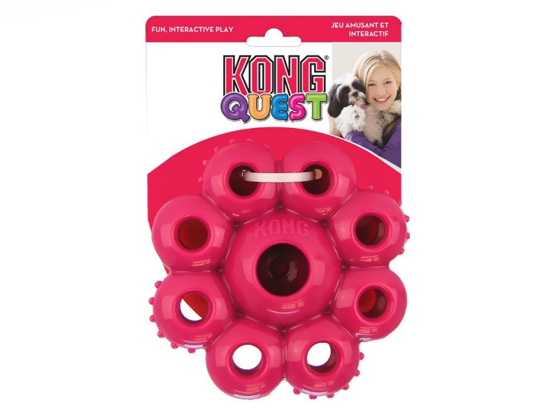 A KONG Quest egy interaktív jutalomfalattal tölthető csillag kutyajáték. Hosszabb ideig leköti a kutyákat figyelmét és ösztönzi az aktív gondolkodást. Könnyedén elrejthető benne a jutalomfalat, száraztáp vagy pástétom. Ideális választás mentális stimulációhoz illetve unalom ellen!
