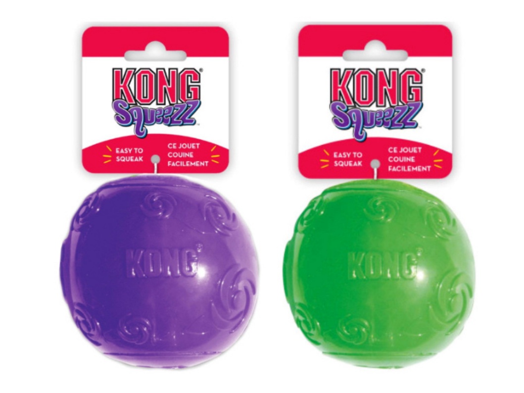 KONG Squeezz sípoló labda egy nagyszerű kutyajáték. A süllyesztett csipogó biztonságos játékélményt biztosít, míg a textúrák extra rágási élményt nyújtanak a kutyának. Ez a szórakoztatóan pattogó labda ideális interaktív játékokhoz is.
