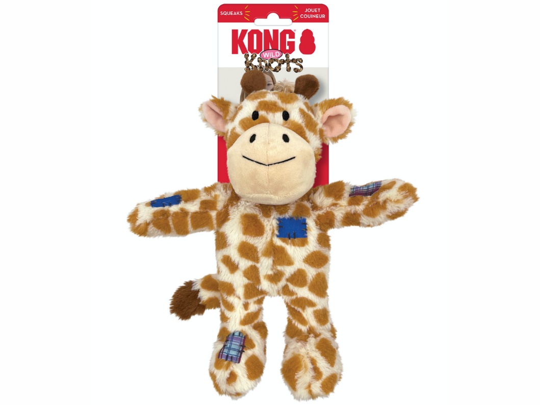 KONG Wild Knots Zsiráf puha plüssjáték csomózott kötélvázzal csipogókkal és zörgőkkel. Kívül puha és ölelgetnivaló míg belül tartós és erős. A kötélváz kielégíti a kutyák természetes ösztöneit. Nem okoz rendetlenséget, így kevesebbet kell takarítani. A csipogók és a zörgők izgalmasabbá teszik a játékot. Kis és közepes méretű kutyáknak is ajánlott!