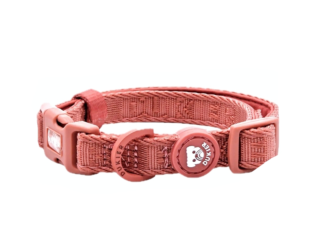 Állítható, kényelmes nyakörv a DUKIER spanyol márkától. Puha neoprén bélésének köszönhetően nem dörzsöli a kutyák nyakát. Széles skálán állítható így tökéletesen illeszkedik. A csattja 4 pontos biztonsági zárrendszerrel van ellátva, így extra védelmet nyújt használat közben. Mosógépben mosható 30 fokon!