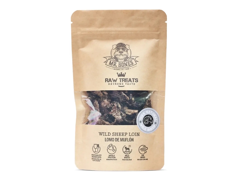 A Mr. Bones juh pecsenye egy egészséges ropogós jutalomfalat. Természetes élőhelyén, vadon élő juhból származik. Friss színhús felhasználásával, kíméletes levegőn szárítással készült. A juhhús nagyon egészséges húsfajta. Tápanyagokban és vitaminokban gazdag. Könnyen emészthető, így érzékeny gyomrú kutyák számára is ideális! Monoproteines, tehát egyféle fehérjét tartalmaz. Gabonamentes.
