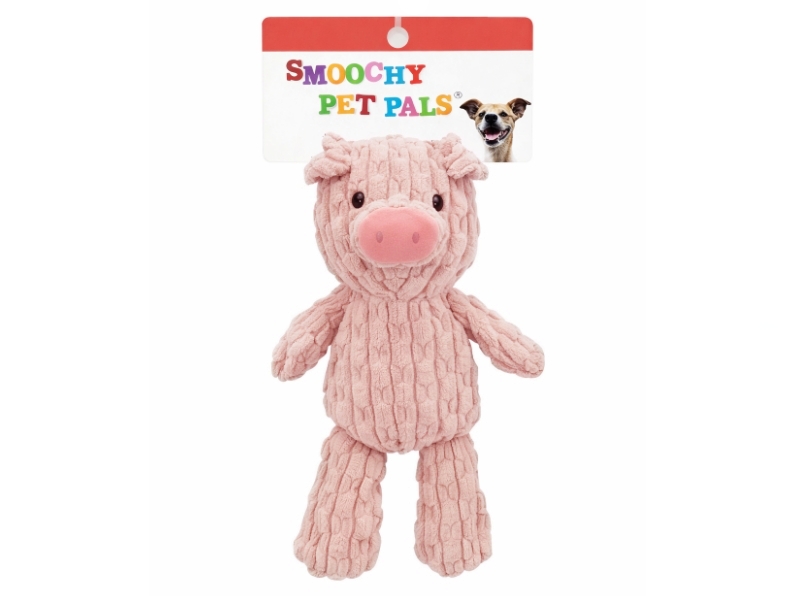Smoochy Pet Pals malacka plüss kutyajáték csipogóval. A figura felszíne bordázott textilborítású, így kellemes érzést nyújt a kutyáknak rágás közben. Az malacka belsejében egy csipogó található, amely garantáltan felkelti figyelmét.