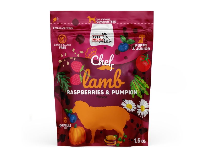 A SYTA MICHA Junior egy magas hústartalmú, glutén- és gabonamentes száraztáp kölyök kutyák számára. A bárányhús alacsony allergiakockázatú és kalóriatartalmú! Könnyen emészthető húsfajta. A hozzáadott Enterococcus faecium törzs egy probiotikum, amely segíti az emésztést és a bélflóra egyensúlyát. A Yucca schidigera kivonat támogatja az emésztést és csökkenti a széklet kellemetlen szagát. A glükozamin és kondroitin támogatja az ízületek és a porcok egészségét.