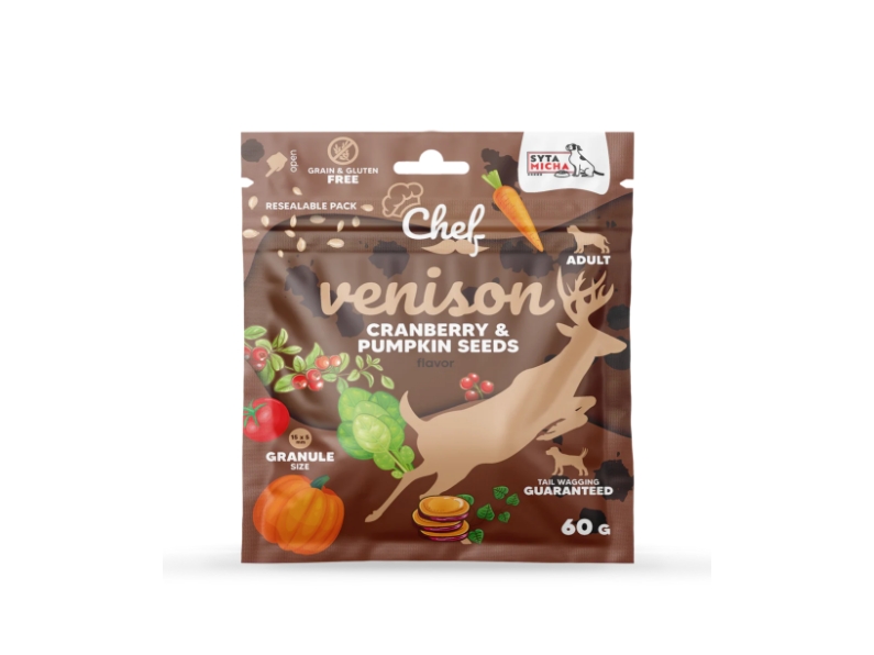 A SYTA MICHA egy magas hústartalmú, gabona- és csirkementes száraztáp felnőtt kutyák számára. A szarvashús az egyik legegészségesebb fehérje. Alacsony allergiakockázatú és kalóriatartalmú! Értékes vitaminokban és ásványi anyagokban gazdag. A hozzáadott Enterococcus faecium törzs egy probiotikum, amely segíti az emésztést és a bélflóra egyensúlyát. A Yucca schidigera kivonat támogatja az emésztést és csökkenti a széklet kellemetlen szagát. A glükozamin és kondroitin támogatja az ízületek és a porcok egészségét.