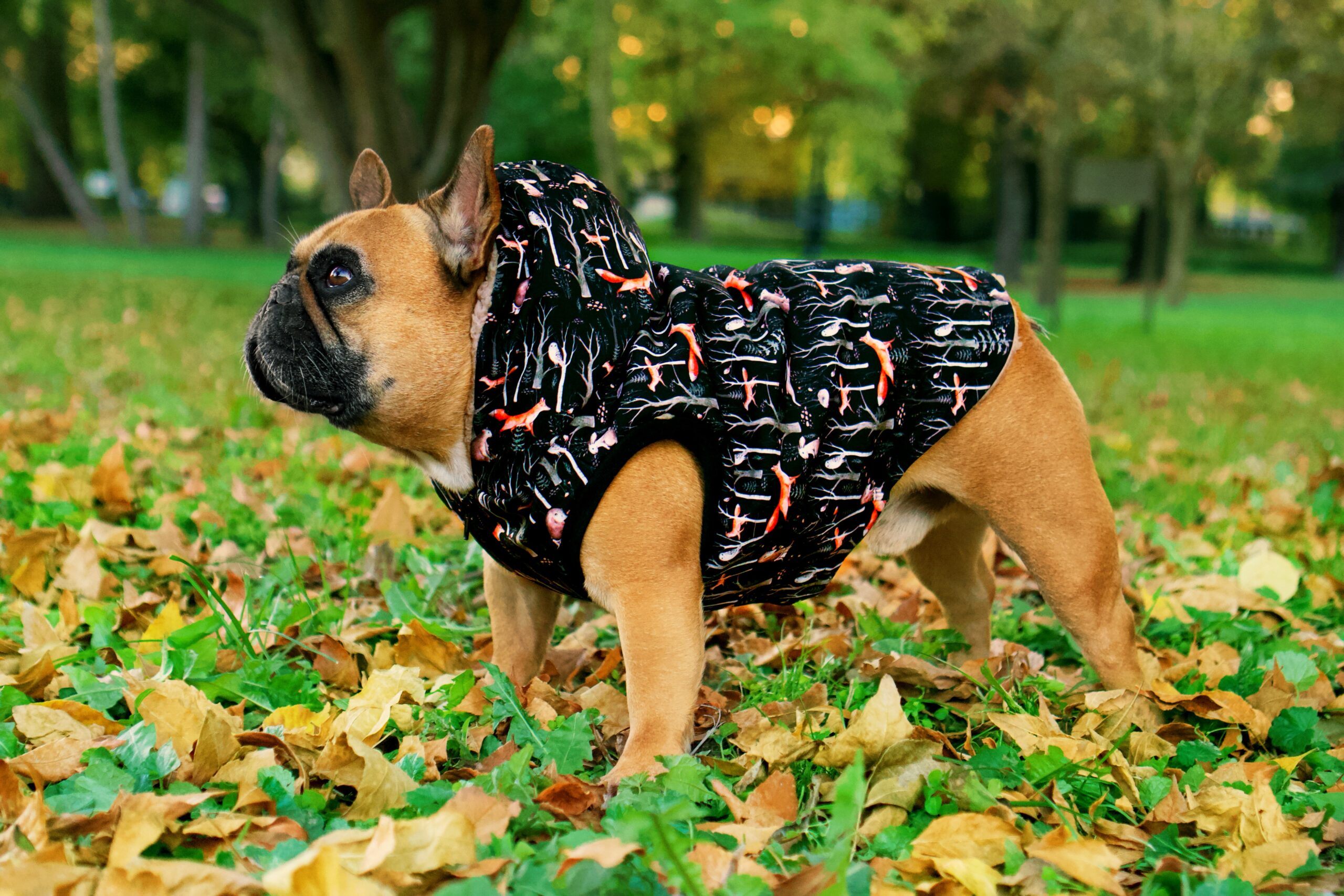 Meleg és kényelmes francia bulldog télikabát. A hideg időben elengedhetetlen ruhadarab. Magyarországon készült minőségi, vegyszermentes anyagokból! Garantáltan ellenáll a szélnek, az esőnek és a havazásnak. A szabása kimondottan ideális francia bulldogok és mopszok számára! Mosógépben 30 fokon mosható!